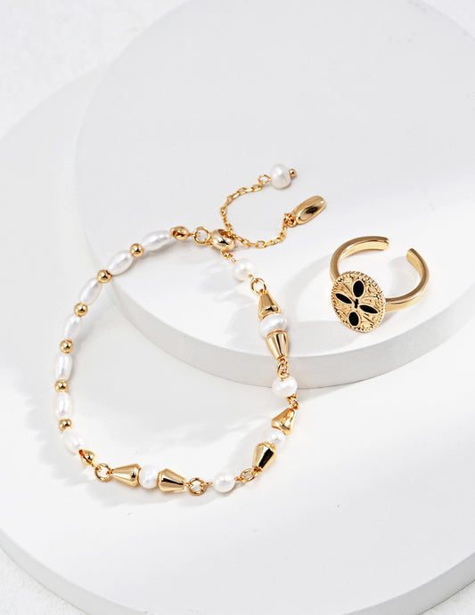 GOLD BEADS FRESHWATER PEARL BRACELET